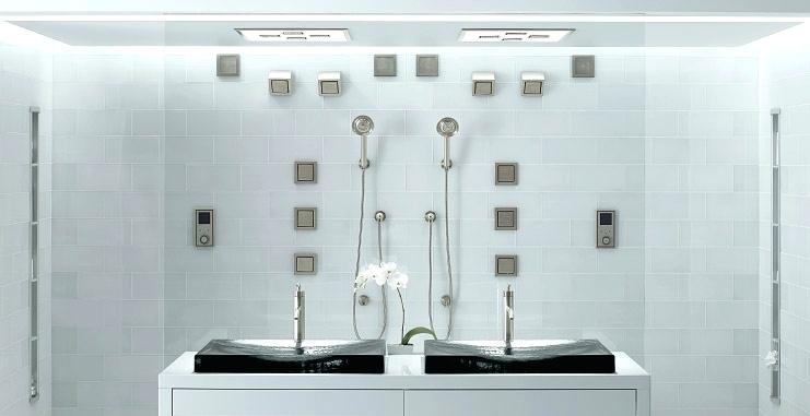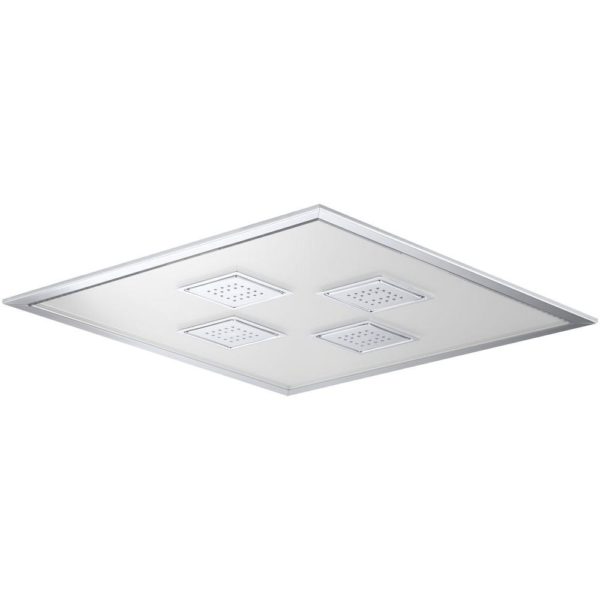 With its 22-nozzle sprayhead, this WaterTile Ambient Rain overhead shower panel brings luxurious water delivery to your DTV+ showering system. Four fully adjustable square sprayheads distribute a stimulating shower of water that simulates a summer rain. Meanwhile, integrated chromatherapy bathes you in mood-enhancing colored light sequences to deliver a truly customized shower experience.