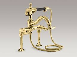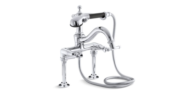 Bring nostalgic charm to your bathroom with Antique faucets and accessories. This Antique bath faucet with handshower creates a beautiful bath profile that complements traditional decors. The faucet features elegant, ergonomic lever handles and a diverter spout for added convenience.
