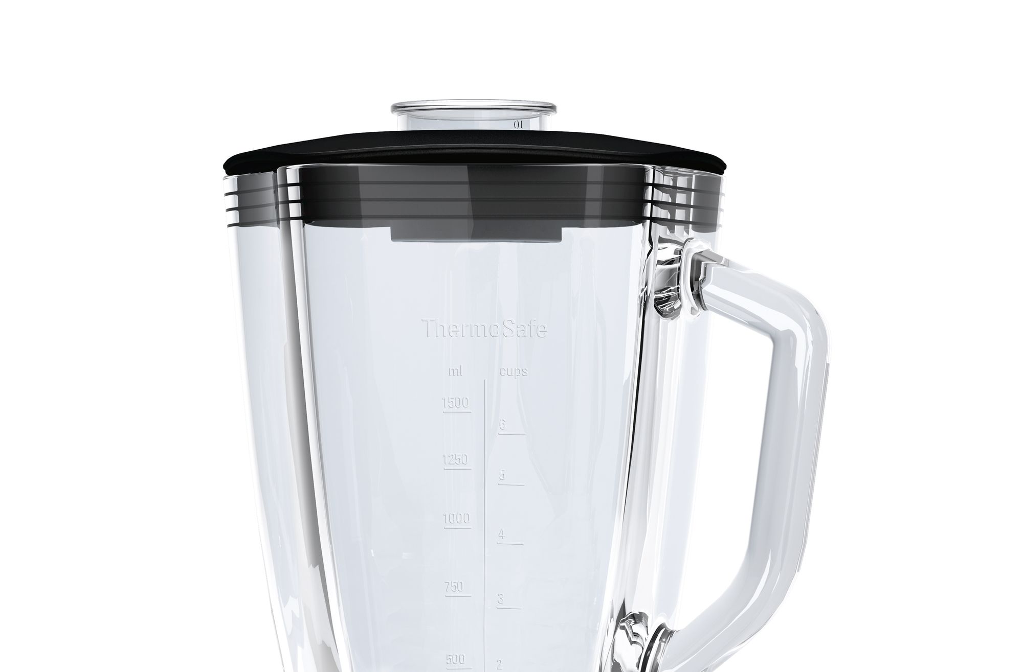 • The thick-walled ThermoSafe glass blender – for easy and safe mixing of hot soups and ice-cold beverages.