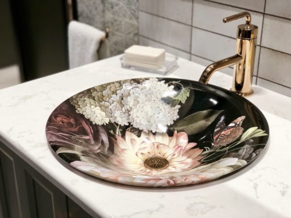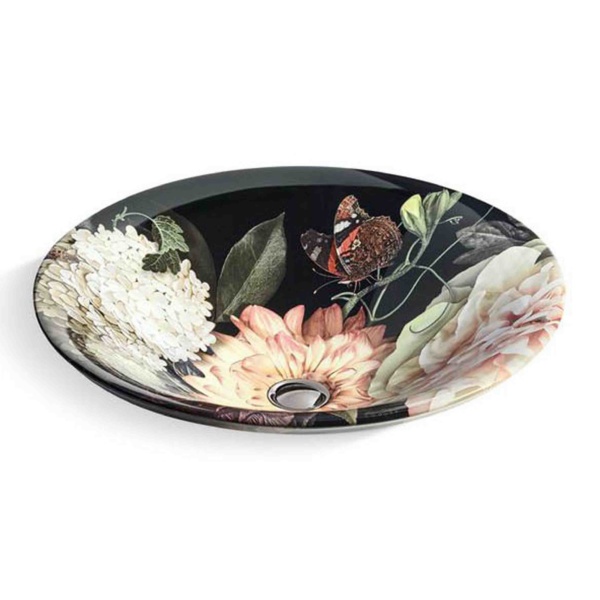 The Dutchmaster collection captures the movement and lush beauty of flowers, bringing bold artistic photography to the bathroom sink. Kohler collaborated with “florography” artist Ashley Woodson Bailey to create this exquisite floral composition. Inspired by Dutch master paintings of the 17th century, the glorious pattern is abloom with peonies, dahlias, ranunculus, and hydrangea, dramatically lit on a dark backdrop in the style of chiaroscuro painting. Rendered on the graceful contours of the Carillon vessel sink, Dutchmaster stands as a bold statement piece in the bath.