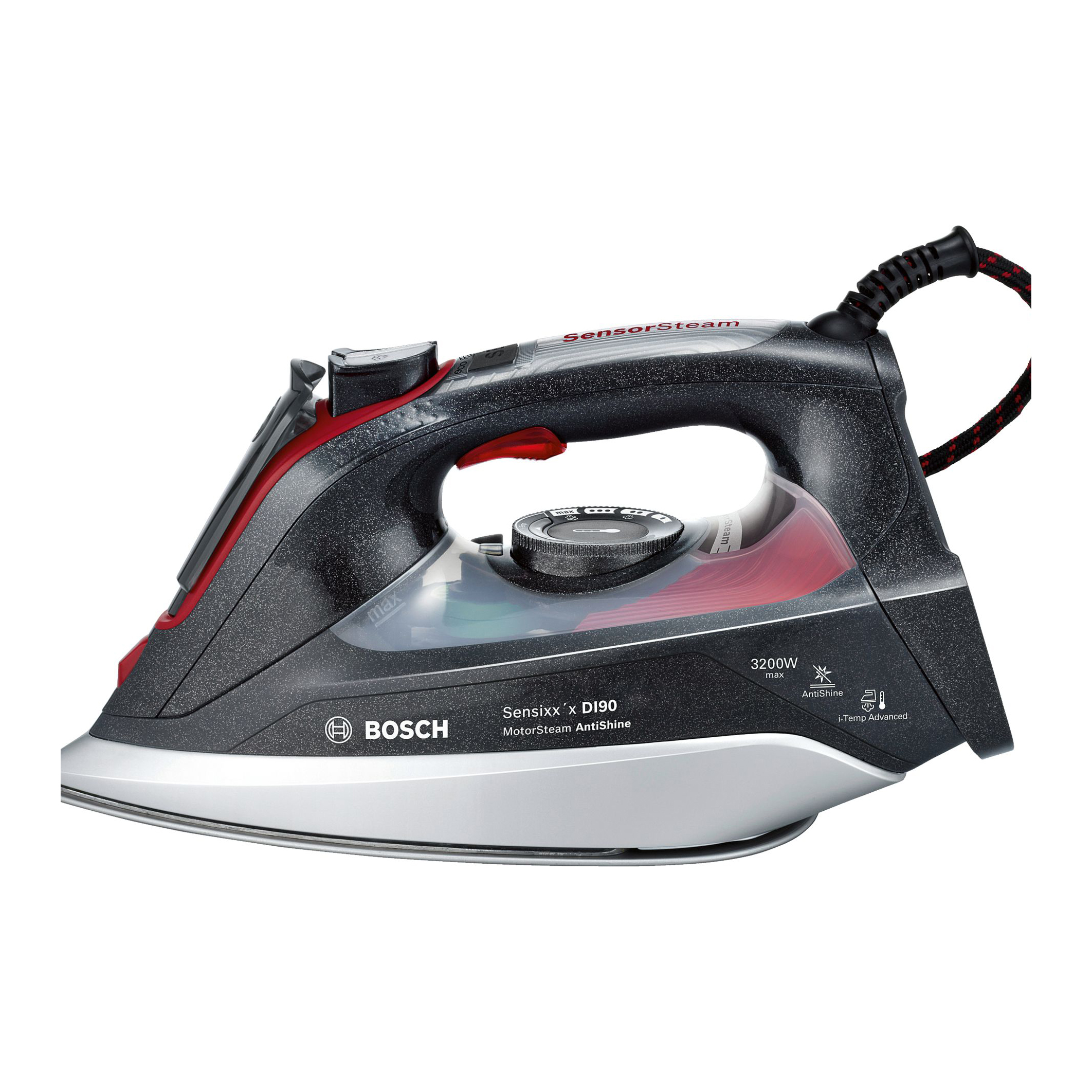 - SensorSteam: touch-operated auto switch-on and shut-off for the appliance and the motor-generated permanent steam.