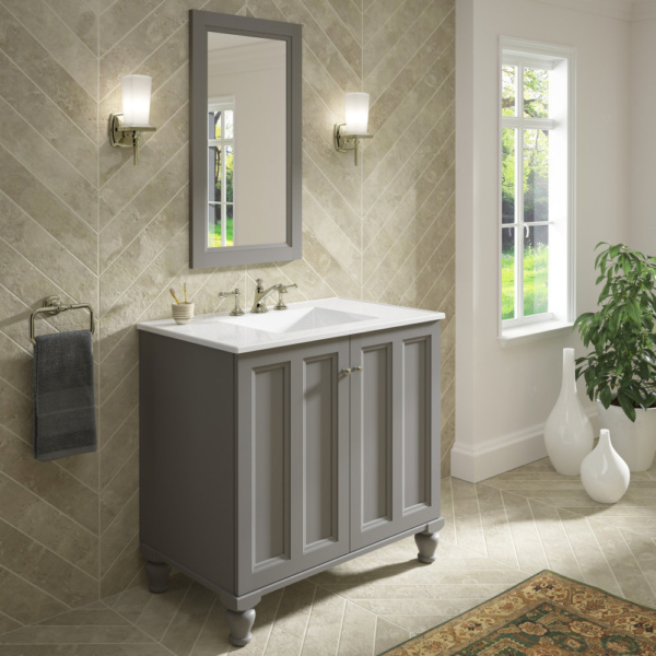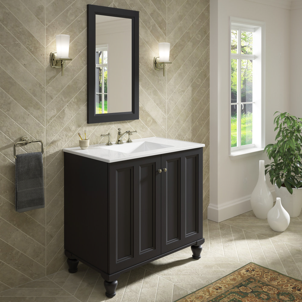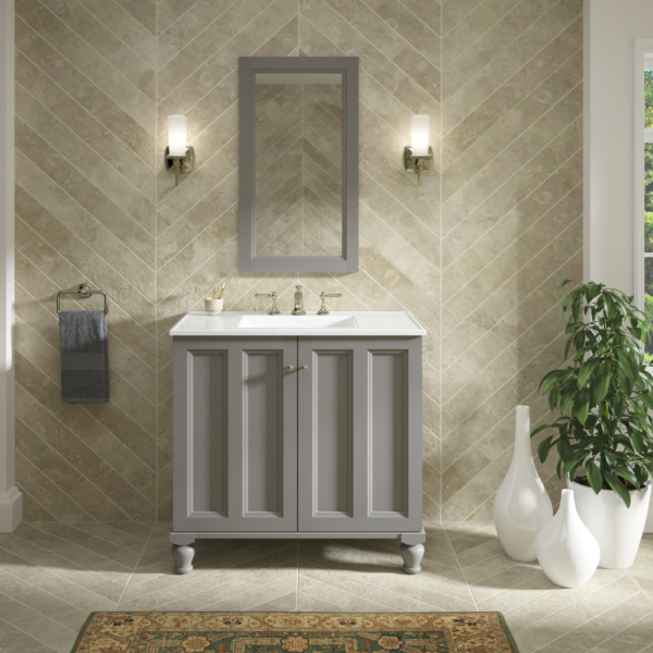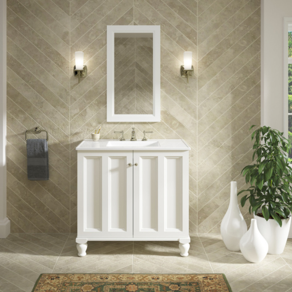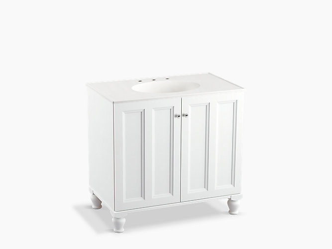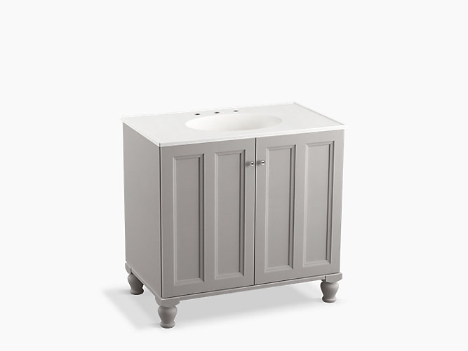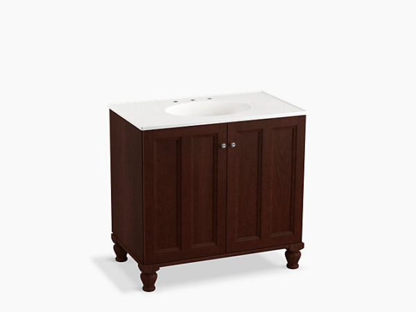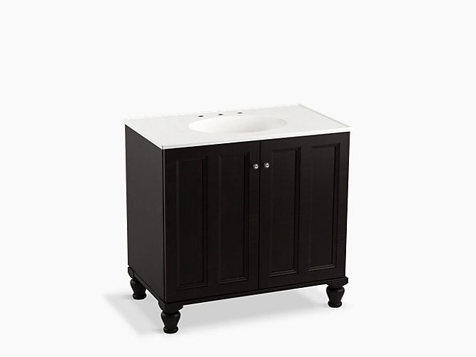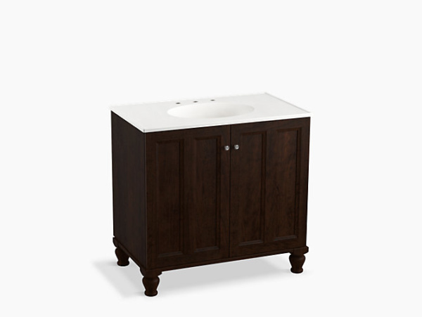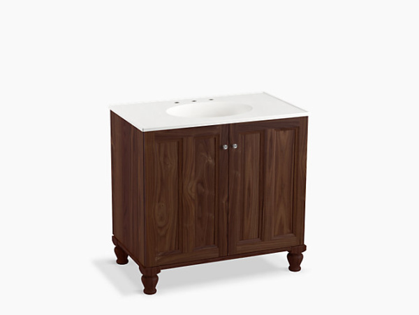 Breathtaking design meets unrivaled craftsmanship in the KOHLER® Tailored vanity collection. No detail was overlooked in the meticulous crafting of this collection, from the premium hardwoods to the specially designed hardware and vanity tops, all available in an array of finishes to create your own look. This Damask vanity cabinet reflects the rich details found in colonial American architecture. Complete your bathroom vanity with a coordinating top, hardware, and accessories from the collection.