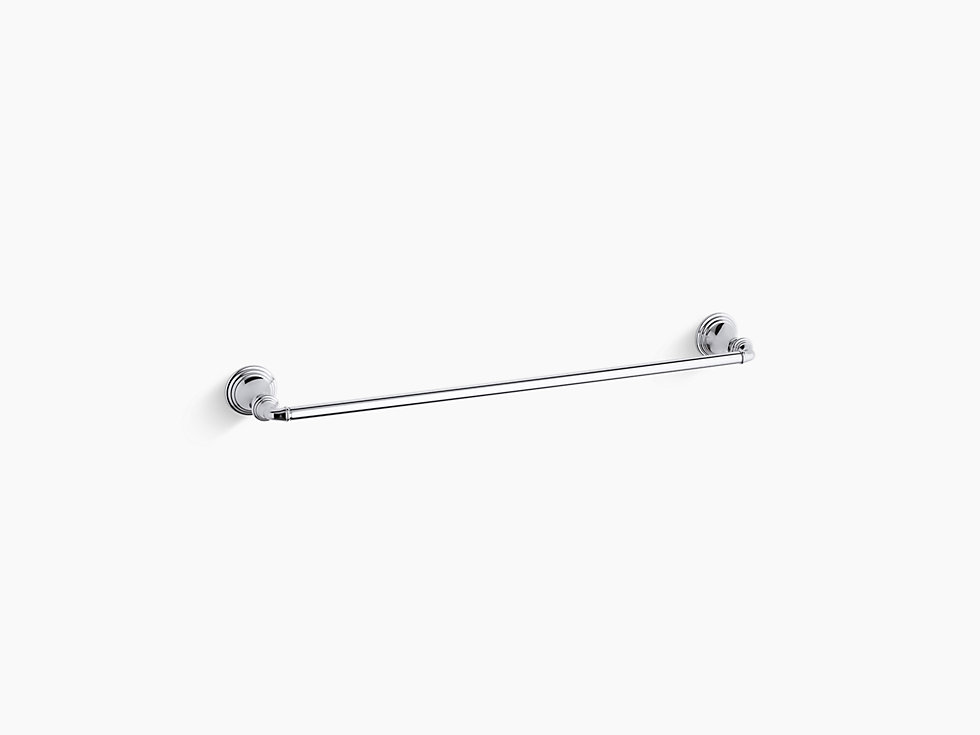 With a striking combination of curves and lines reminiscent of old-world design, Devonshire accessories provide distinctive visual impact for bath and powder rooms. This 24-inch towel bar offers plenty of space for bath and hand towels, and coordinates perfectly with the Devonshire Collection.