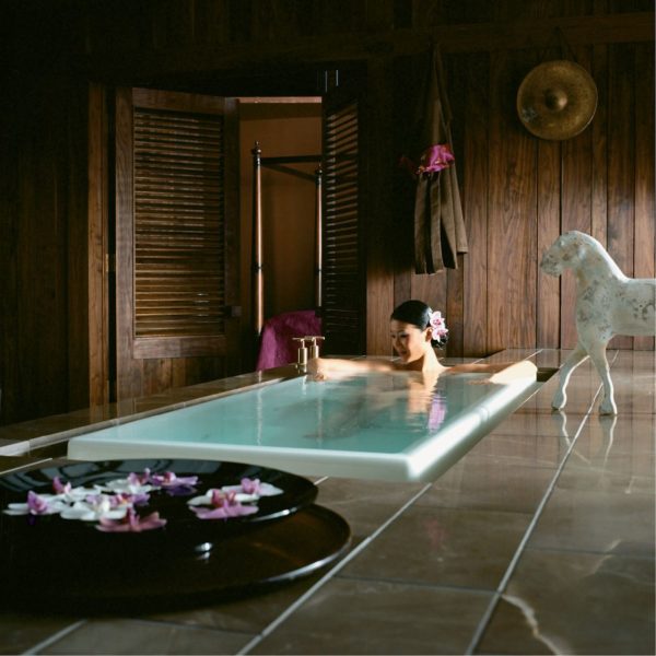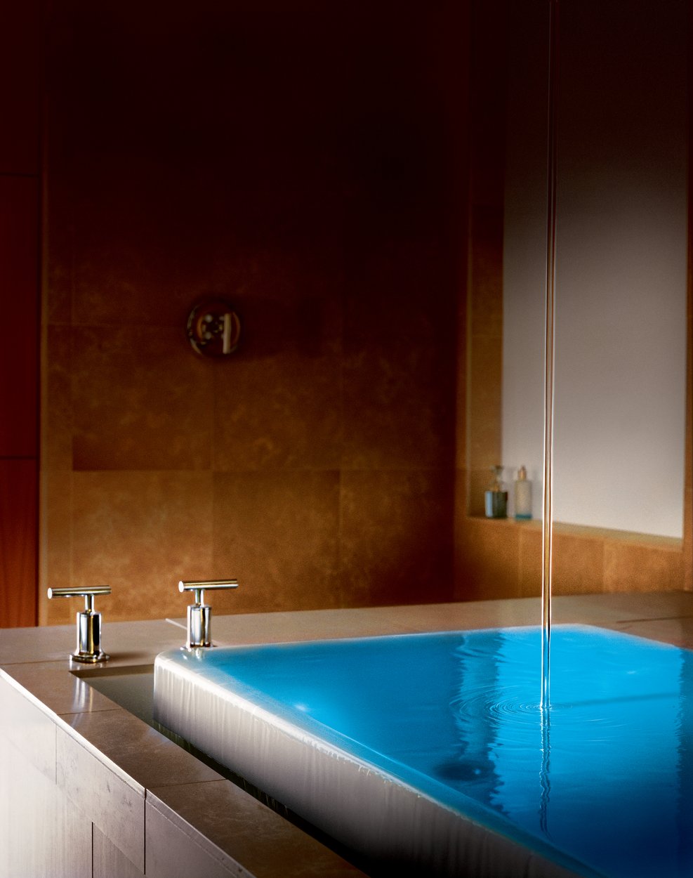 Escape with a partner in this ultra-deep and private retreat. With a continuous flow of water cascading over the sides of the basin, the sok bath offers whole-body immersion as chromatherapy surrounds you with calming colored lights. Effervescence ports release thousands of tiny champagne-like bubbles, creating a luxurious sensory experience for two.