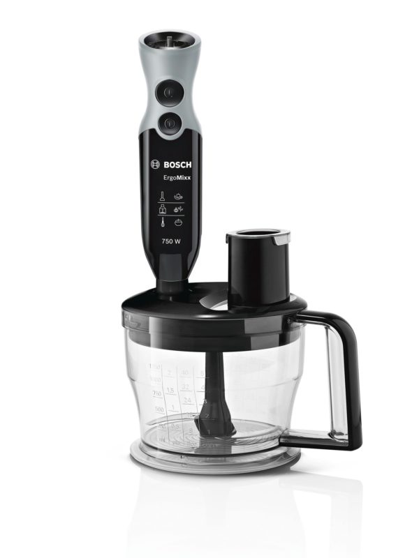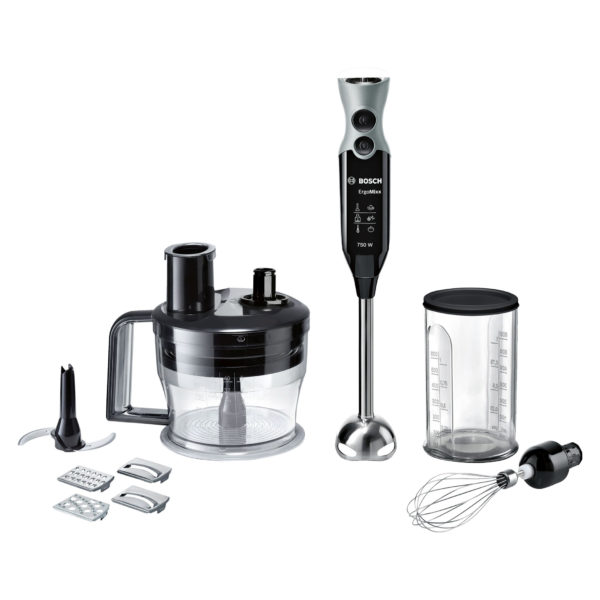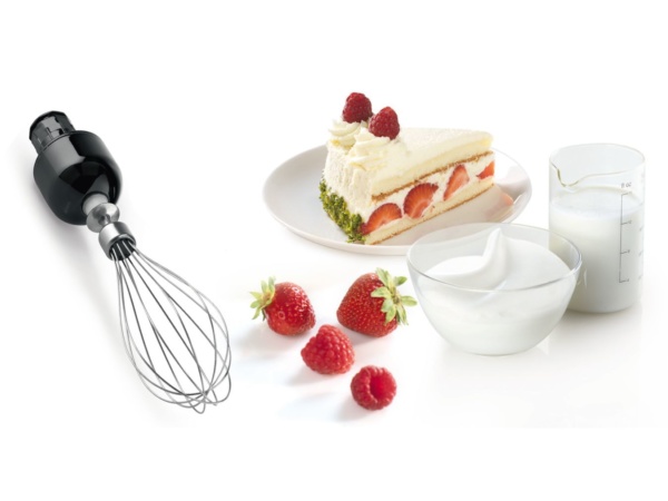 - With exclusive accessories: chopper, e.g. for chopping herbs, nuts and cheese, with an additional ice-crush-blade for the processing of ice cubes and a whisk for beating egg whites and cream