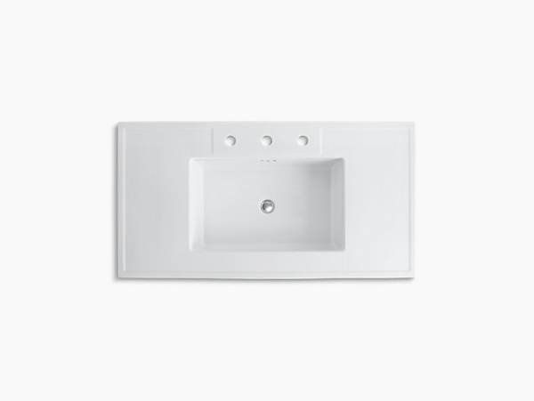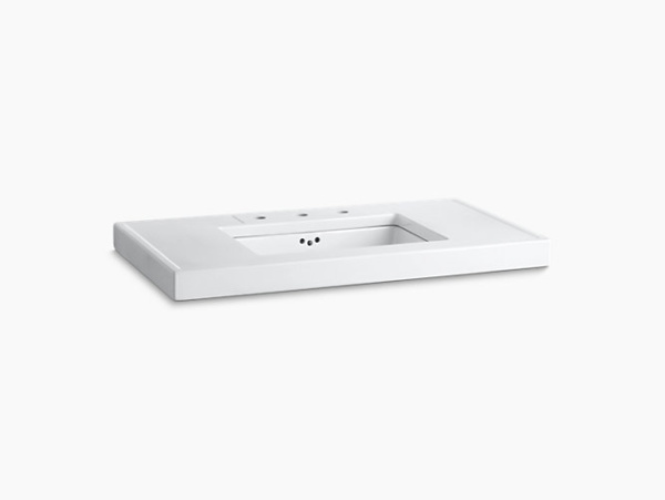 Bring timeless sophistication to your bathroom with the Kathryn console tabletop. Made of durable fireclay, this elegant tabletop was inspired by a 1929 KOHLER exhibition at the Metropolitan Museum of Art. Part of the Kathryn collection, this tabletop creates an upscale look for any bathroom, particularly when paired with a Kathryn sink and Kathryn console legs.