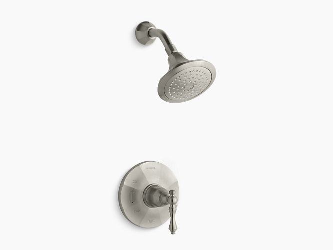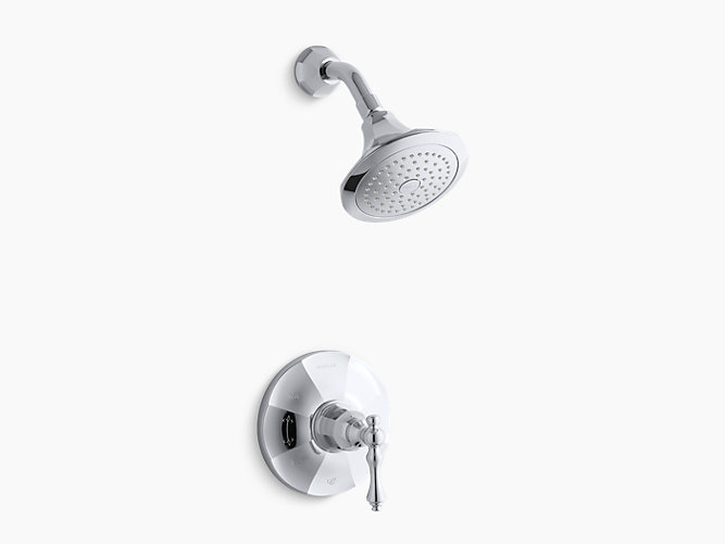 Gracious and inviting, Kelston evokes the grandeur of traditional design while delivering outstanding performance. This Kelston shower trim includes a showerhead and a single lever handle with faceted faceplate. Pair this trim with a Rite-Temp pressure-balancing valve, which maintains your desired water temperature during pressure fluctuations.