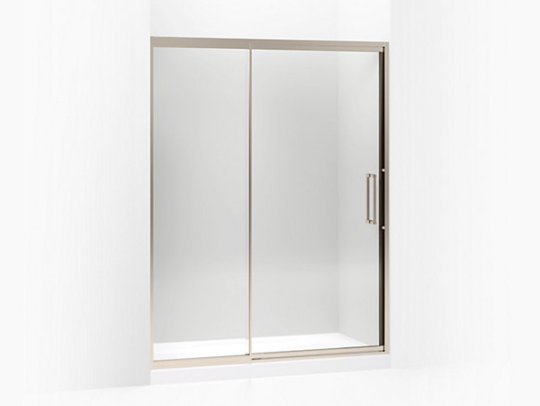 Pivot shower door, 76″ H x 57 – 60″ W, with 3/8″ thick Crystal Clear glass