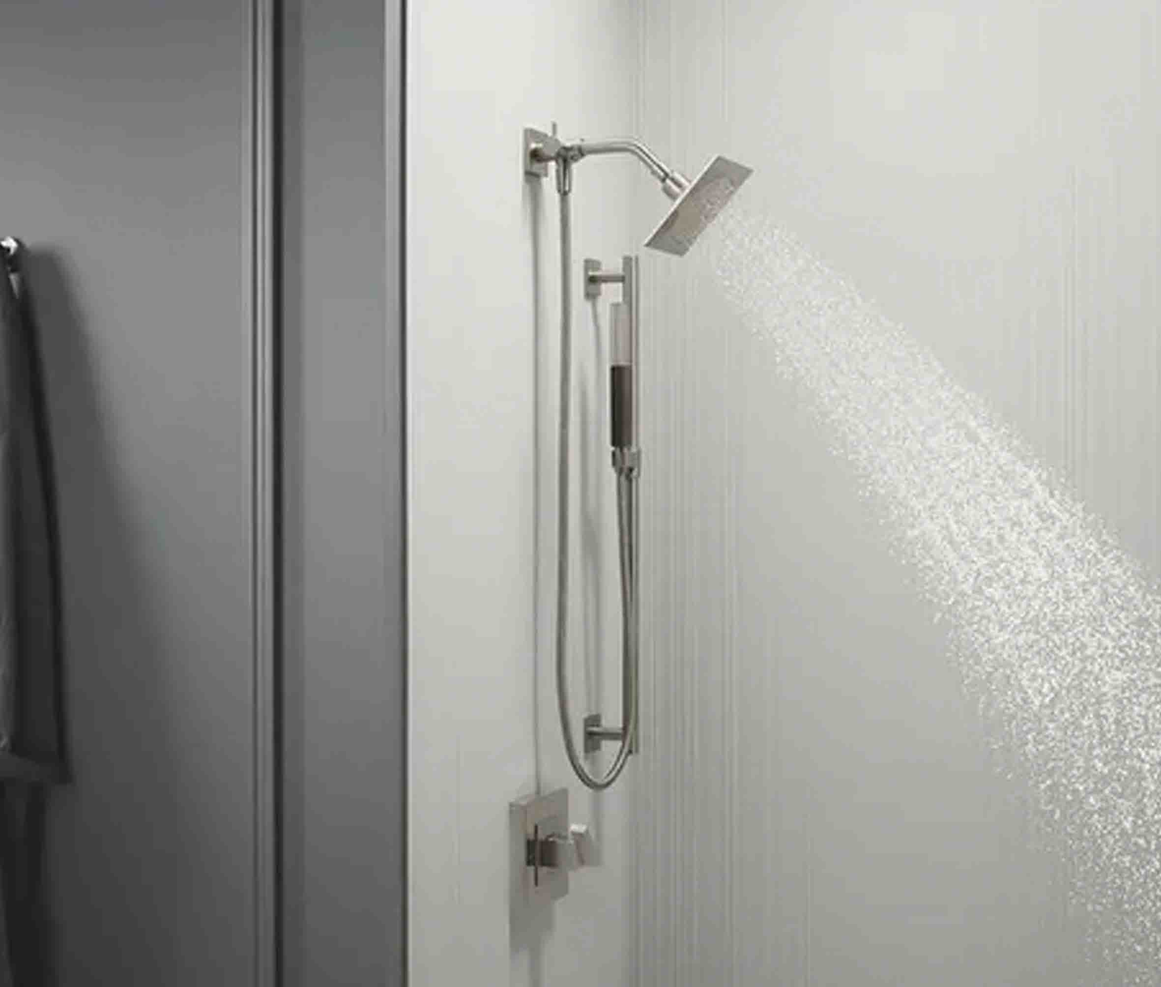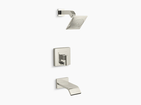 Combining a sleek profile with enhanced utility, Loure introduces a classically modern look to your bath decor. This bath and shower faucet trim includes a lever handle with push-button diverter as well as a single-function showerhead. Pair this trim with a Rite-temp® pressure-balancing valve with push-button diverter, which maintains your desired water temperature during pressure fluctuations.