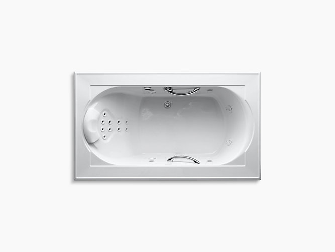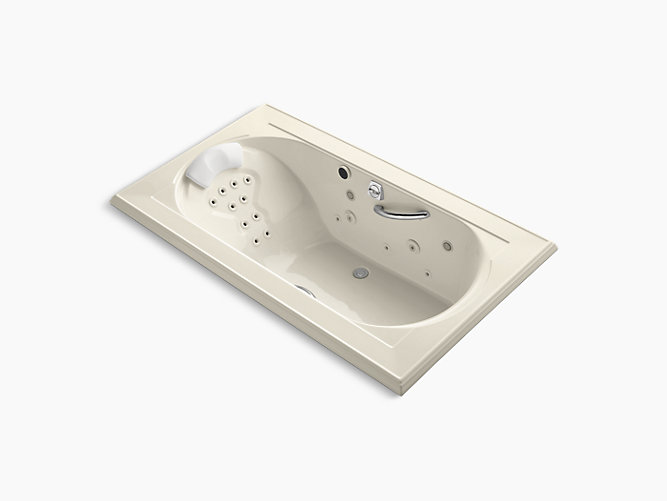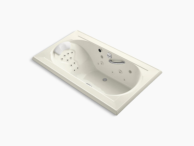 With rich detailing reminiscent of crown molding, Memoirs brings classic architectural style to your bathroom. This Spa/Massage Package bath offers a choice of calming or invigorating water therapy to suit your mood. Its full package of hydromassage options including whirlpool jets, sequencing backjets, and a pillow with pulsating neckjets to envelop your entire body in relaxation. Effervescence ports release thousands of tiny champagne-like bubbles for a unique, revitalizing sensation, while chromatherapy lights bathe you in the soothing glow of colors.