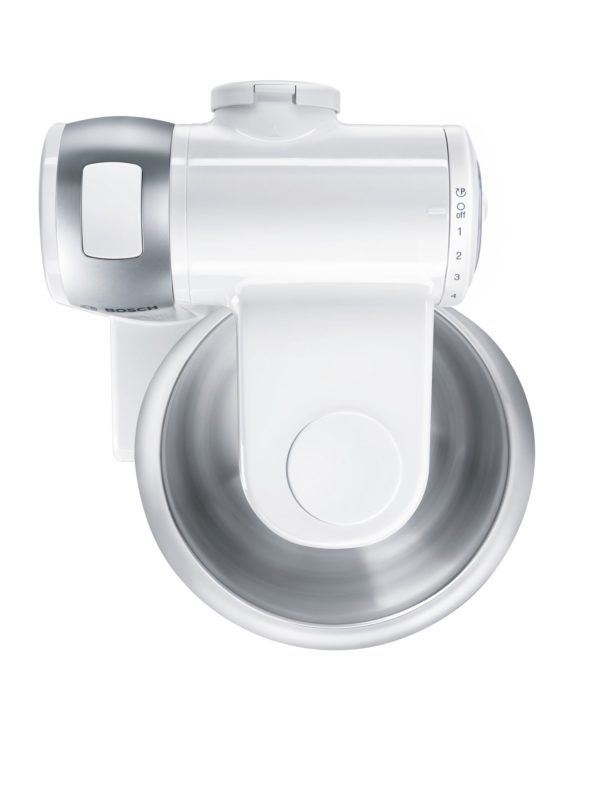 MUM4 — the tried-and-tested classic among food processors — boasting exceptional Bosch quality and a wide range of accessories. In white/silver.