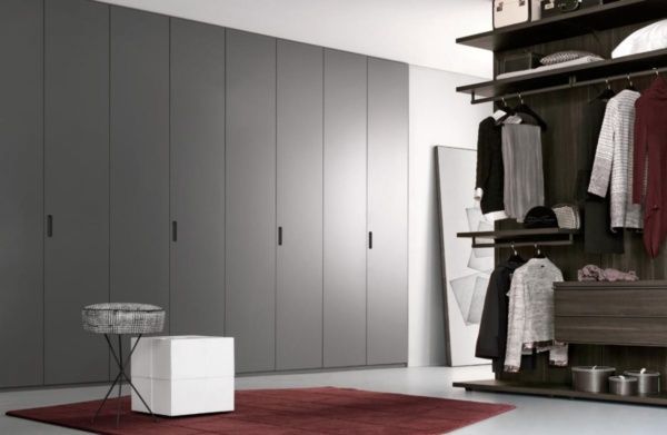 Wardrobe with hinged, folding, sliding, coplanar doors. Finishes: mat lacquer.