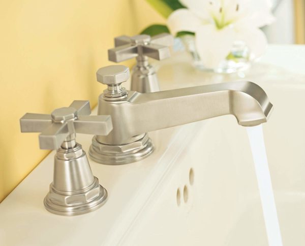 Featuring elements of vintage 1930s American design, the Pinstripe Pure bathroom sink faucet lends a sense of relaxed luxury to your bath or powder room. The classic cross handles and angular spout bring a seamless balance of geometric forms and symmetrical lines. This faucet is outfitted with easy-to-install, leak-free UltraGlide™ valves for excellent performance.