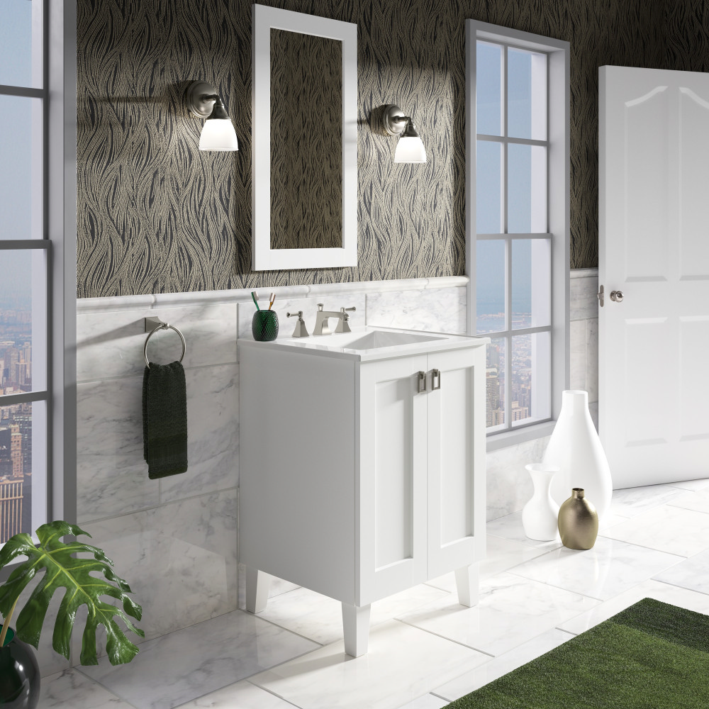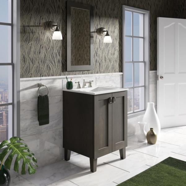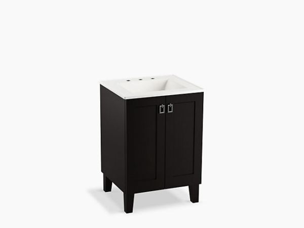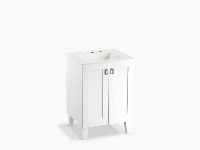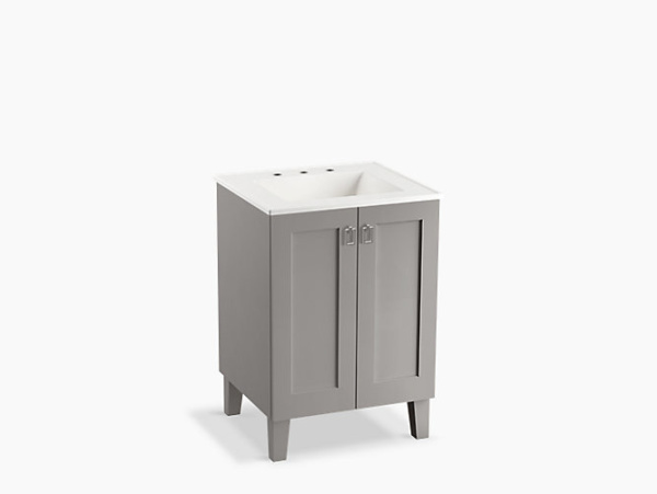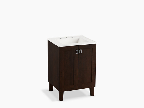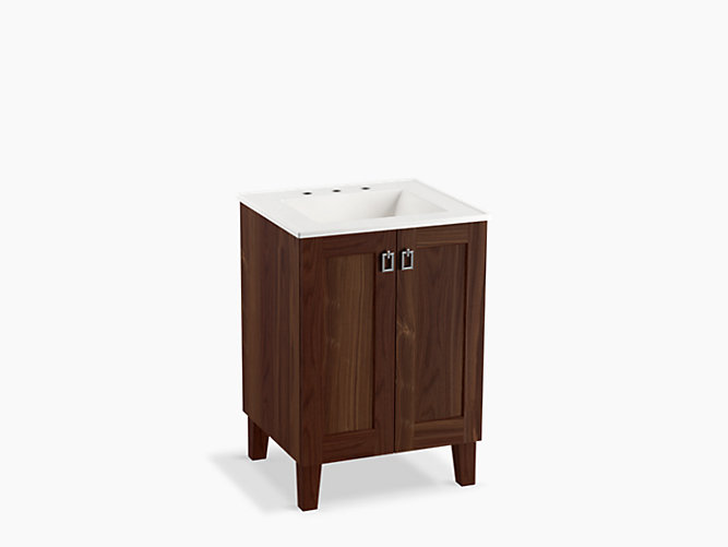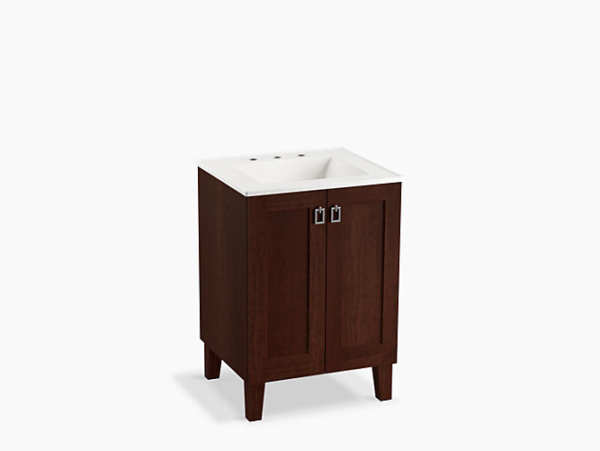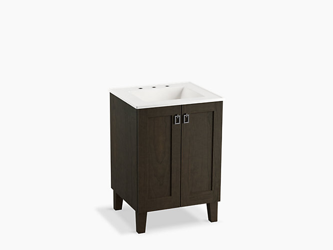 Breathtaking design meets unrivaled craftsmanship in the KOHLER® Tailored vanity collection. No detail was overlooked in the meticulous crafting of this collection, from the premium hardwoods to the specially designed hardware and vanity tops, all available in an array of finishes to create your own look. This Poplin vanity cabinet draws its inspiration from Craftsman and Shaker furniture designs and features a prominent wood grain for a robust, rustic feel. Complete your vanity with a coordinating top, hardware, and accessories from the collection.