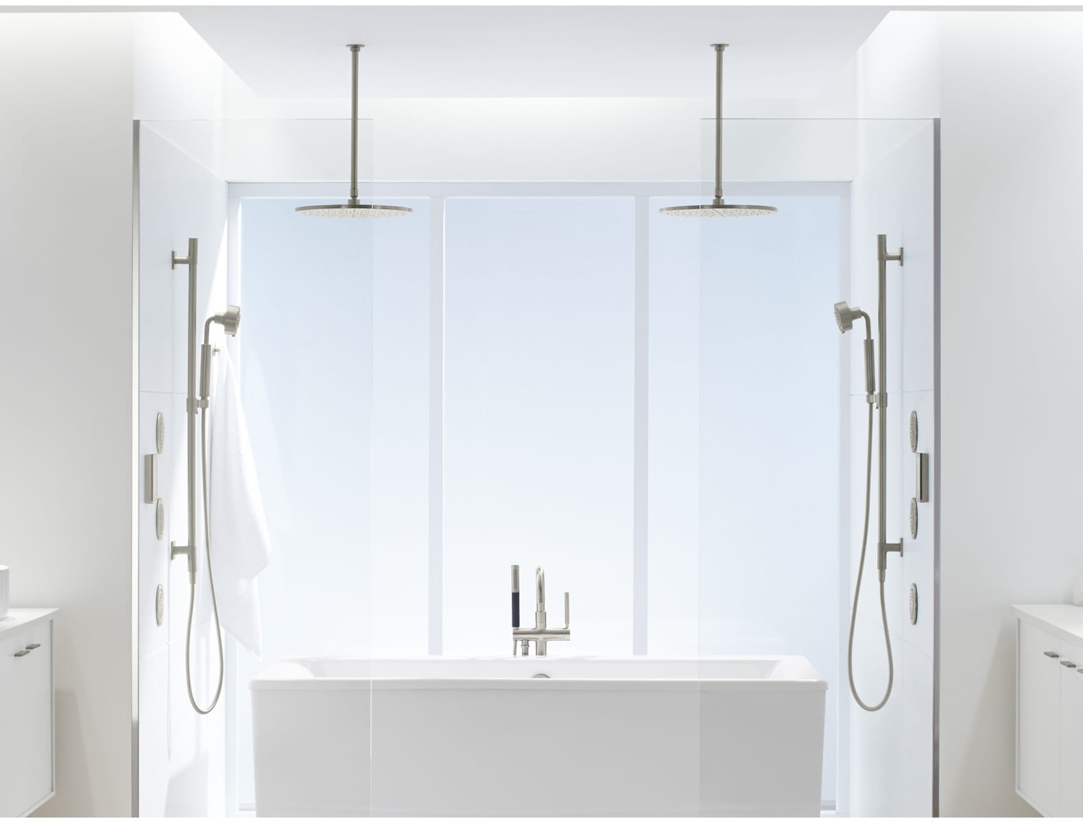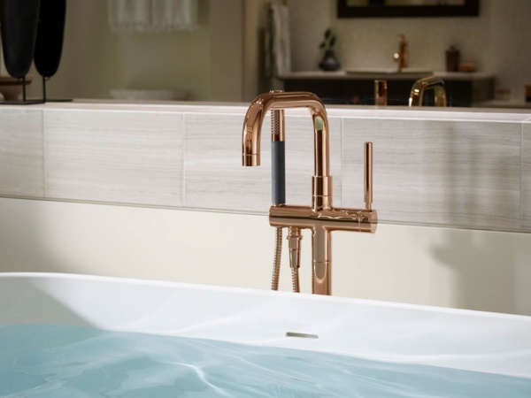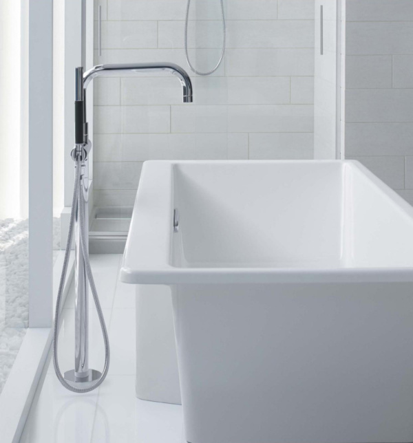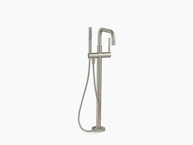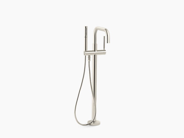 Purist faucets and accessories combine simple, architectural forms with sensual design lines. Featuring this modern, minimalist style, the Purist floor-standing filler trim complements a wide variety of freestanding baths. It brings sophistication to your bathroom with a defined profile and sleek, integrated handshower.