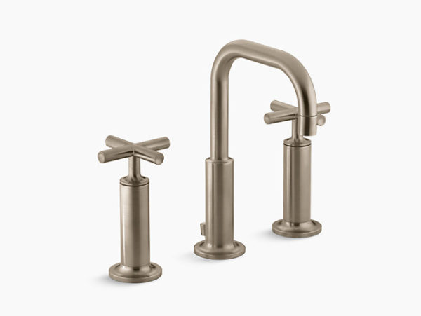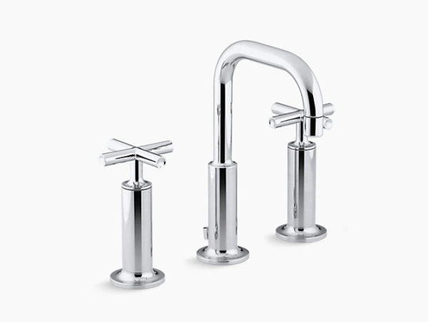 Combining architectural forms with sensual design lines, Purist faucets and accessories bring a touch of modern elegance to your bathroom. This sink faucet exemplifies the Purist collection’s understated style, with its low gooseneck spout and high cross handles. Easy-to-install and leakfree UltraGlide™ valves provide reliable performance and durability. And the spout features laminar flow, which helps conserve water while preventing splashing.