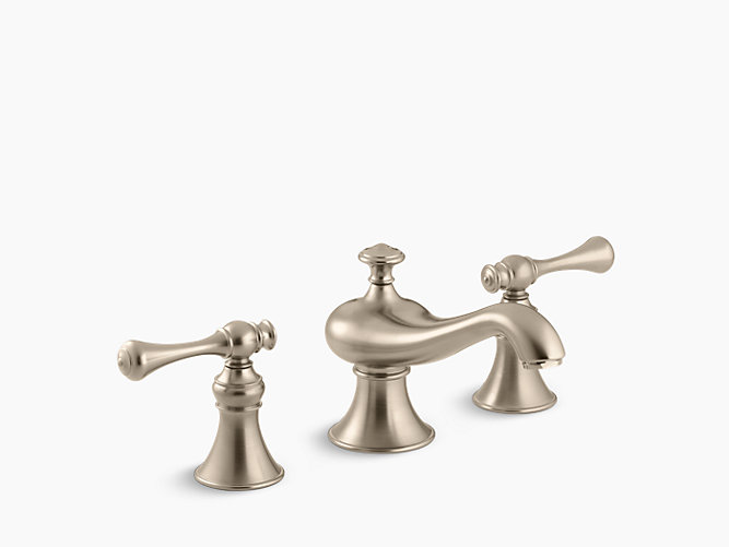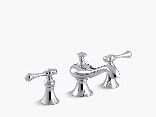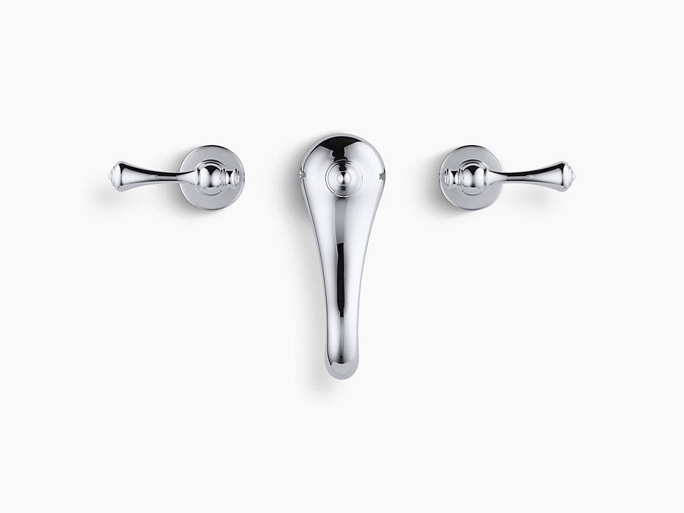 Blending European style and early American influences, Revival faucets and accessories bring continuity to your bathroom design. This bathroom sink faucet trim features a gracefully arched spout and traditional-style lever handles in a space-saving wall-mount design-an elegant choice for vessel sinks or sinks without faucet holes. Pair this trim with a two-handle ceramic disc valve for optimal performance