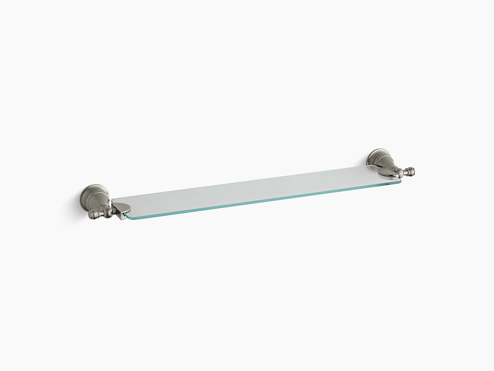 Bring the essence of Art Deco to your bathroom with Revival accessories, which incorporate elliptical shapes and rolled edges inspired by classic 1920s design. At home in both traditional and contemporary bathrooms, this tempered-glass shelf mounts to the wall, keeping bath accessories within easy reach.