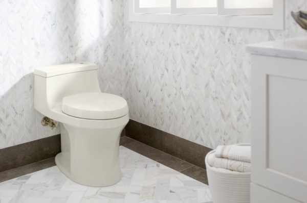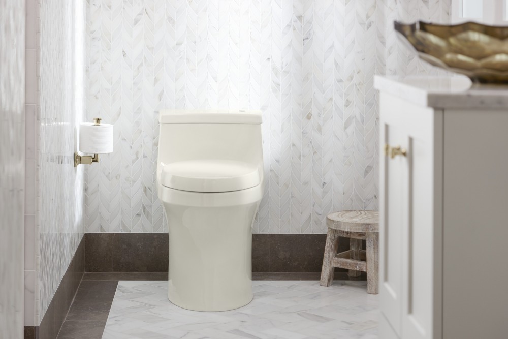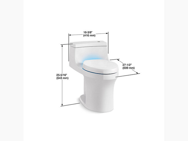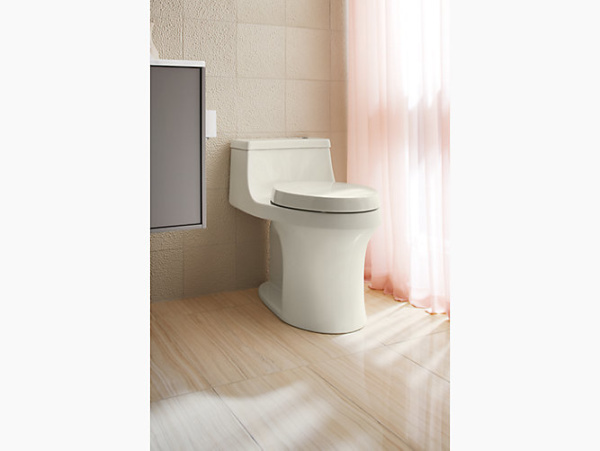 The San Souci one-piece toilet offers a sleek, contemporary design combined with KOHLER touchless flush. Just hold your hand over the tank sensor to activate the flush. No handle to touch means fewer germs to pick up or leave behind. This toilet features innovative AquaPiston technology, a patented flush engine that delivers a fast, powerful, and virtually plug-free flush. A 1.28-gallon flush provides significant water savings of up to 16,500 gallons per year, compared to a 3.5-gallon toilet, without sacrificing performance.