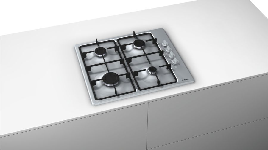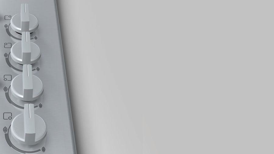 The gas hob with side-mounted controls: the desired cooking zones can be conveniently operated from the side.