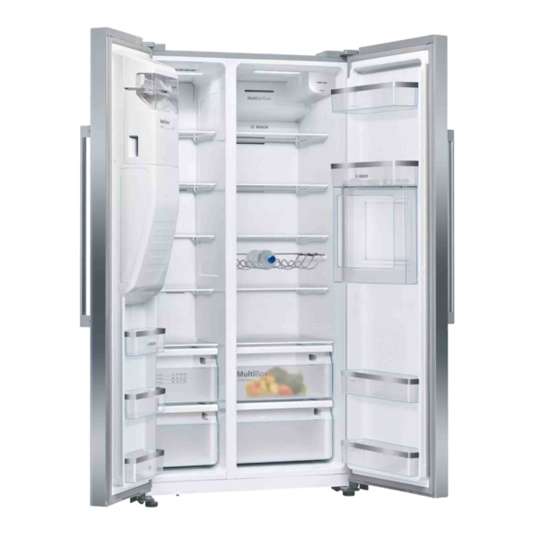 The NoFrost side-by-side fridge-freezer with ice and water dispenser and HomeBar: provides convenient access to your drinks.