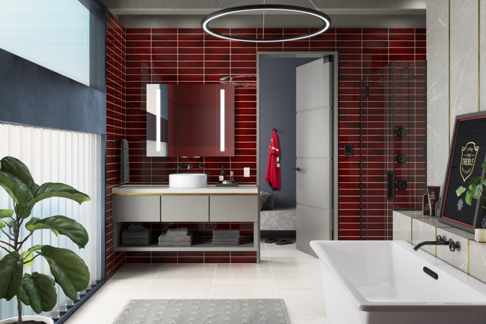 • Ergonomic sprayhead pivots to allow precise adjustment for a targeted hydromassage.