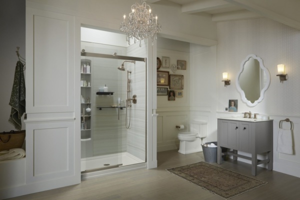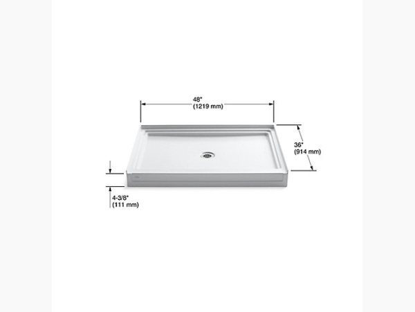 48″ x 36″ single threshold center drain shower base. With crisp lines and an elegant border, this Tresham shower base brings classic American design to the bathroom. Designed for comfort, this base features a low threshold for easy access. Available in a palette of KOHLER colors to complement any décor.