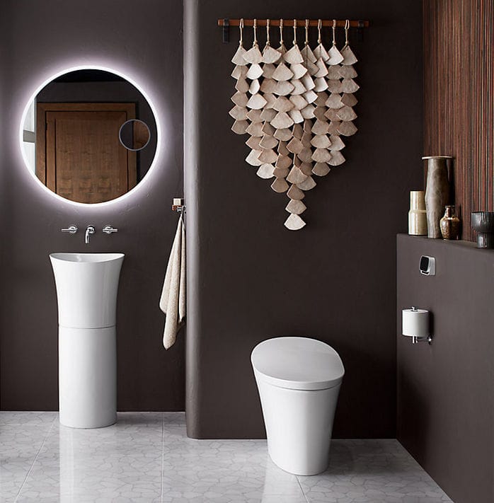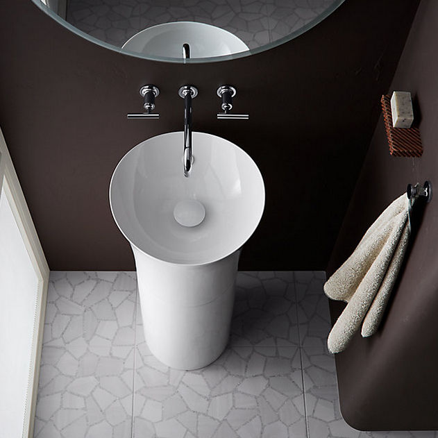 Veil’s flowing and immaculately balanced curves evoke a sculpted simplicity in tune with contemporary style. This Veil pedestal sink utilizes innovative Supramic technology to create a thin-edged, modern design without sacrificing durability. Enhanced by a high-gloss finish, the sink’s sleek, organic shape is easy to clean.