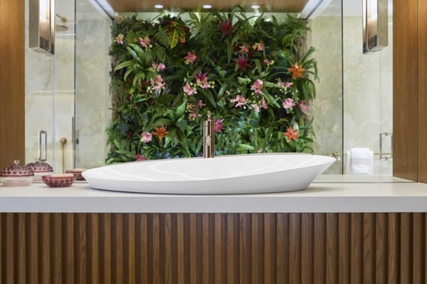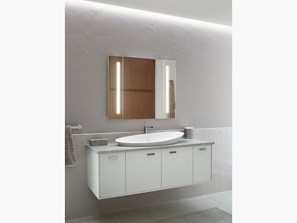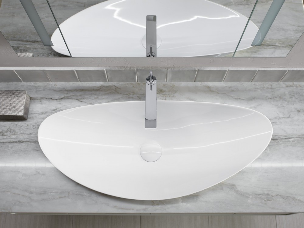 Veil’s flowing and immaculately balanced curves evoke a sculpted simplicity in tune with contemporary style. This Veil trough-style vessel sink utilizes innovative Supramic technology to create a thin-edged, modern design without sacrificing durability. Enhanced by a high-gloss finish, the basin’s sleek, organic shape is easy to clean.