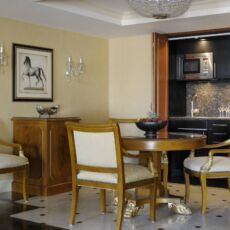 Located in ’s district, the Marriott Omar Khayyam is one of Cairo’s oldest gems; offering luxurious rooms with balconies providing panoramic views of the Nile and six acres of the gardens. Shahed Group is proud to have been chosen as the kitchen designer for the royal suite, ambassador suite and presidential suites. Marriott opted for our Pocket kitchenette in Oak 185. Not only is it space efficient, but the kitchen blends in with the open-plan living space, making it aesthetically pleasing. Behind the pocket doors, you will find worktops, drawers, shelves, integrated appliances and smaller home appliances. Everything is out of sight yet easily accessible.